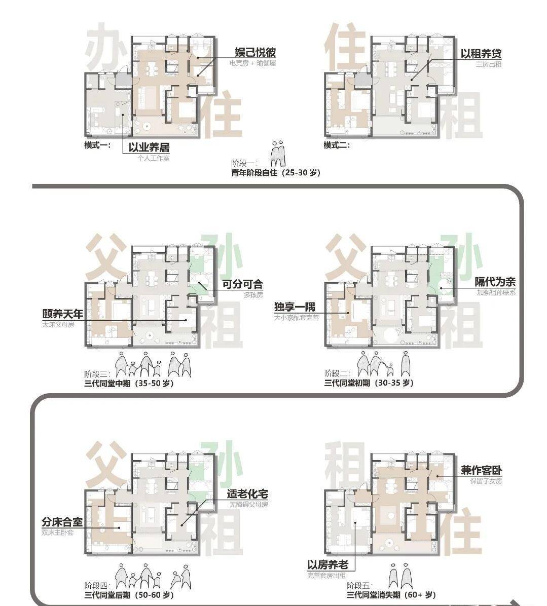 从新婚夫妻,到二孩家庭,再到孩子长大离家,再到自己变成老人……这套140平的房子,竟然能适配几乎所有阶段。