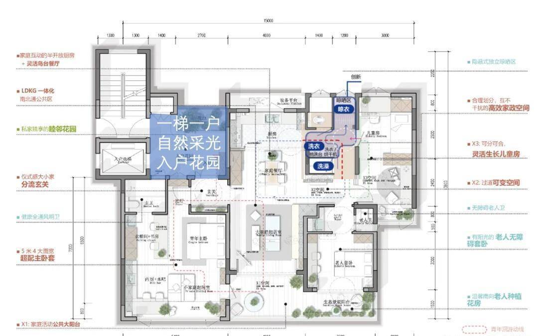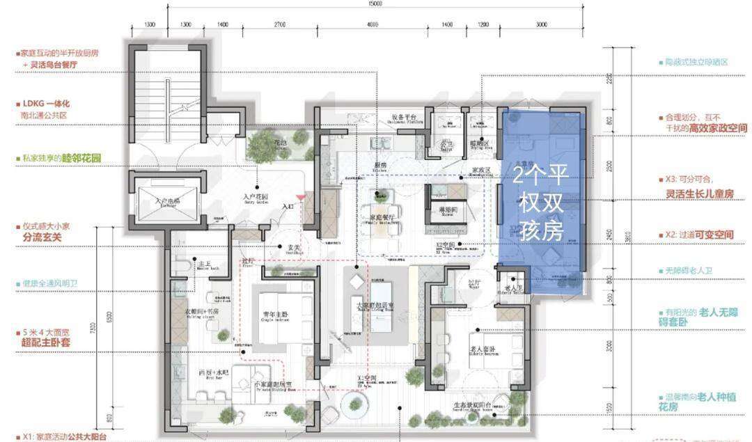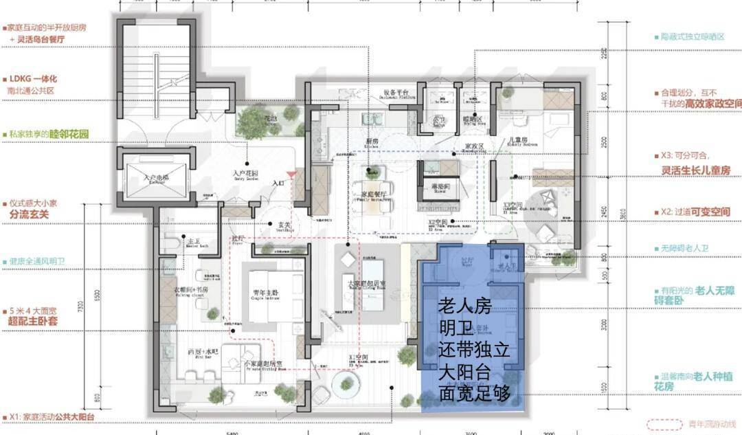这套户型给出了一个足够聪明的答案:它把“三代同住”的复杂需求都提前想好了,用“物理分隔”解决了隐私问题。